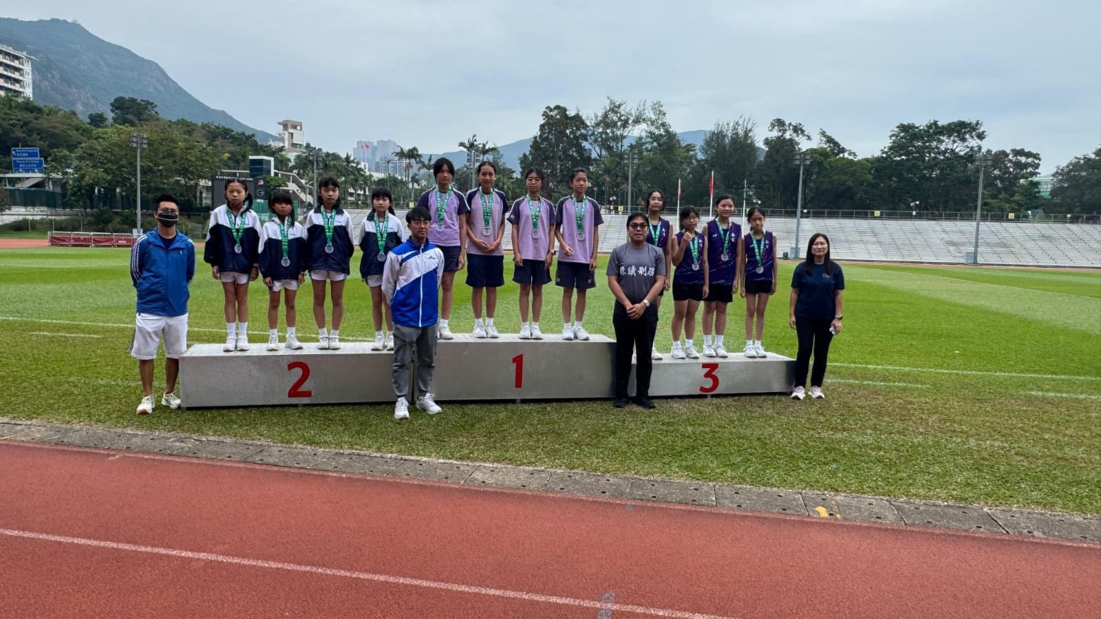 本學年度參賽的參賽隊伍數目較往年更多,男子田徑接力代表於十隊中榮獲季軍;女子田徑接力代表於八隊中勇奪冠軍,恭喜各田徑代表隊同學在眾多隊伍中脫穎而出,欣賞同學努力練習,並在運動場上展現團隊合作精神。