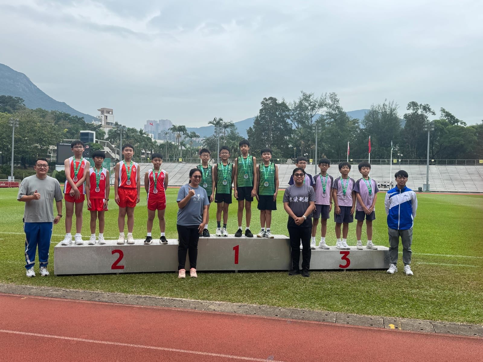 本學年度參賽的參賽隊伍數目較往年更多,男子田徑接力代表於十隊中榮獲季軍;女子田徑接力代表於八隊中勇奪冠軍,恭喜各田徑代表隊同學在眾多隊伍中脫穎而出,欣賞同學努力練習,並在運動場上展現團隊合作精神。