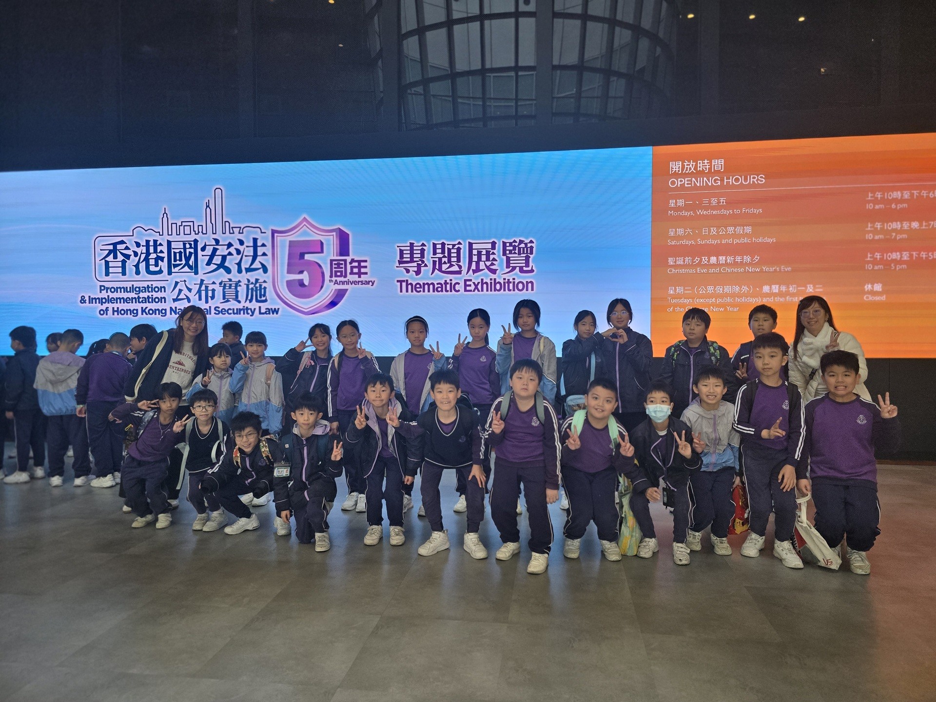 1月29日(四)上午,本校安排一至六年級學生參觀香港特別行政區國家安全展覽廳,出席導賞團活動。國家安全展覽廳於2024年8月7日正式開放,是香港特別行政區首個有系統地介紹國家安全的專廳,也是香港特區首個實體國家安全教育基地。